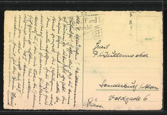 alte Ansichtskarte, gelaufen, Briefmarke entfernt, guter Zustand