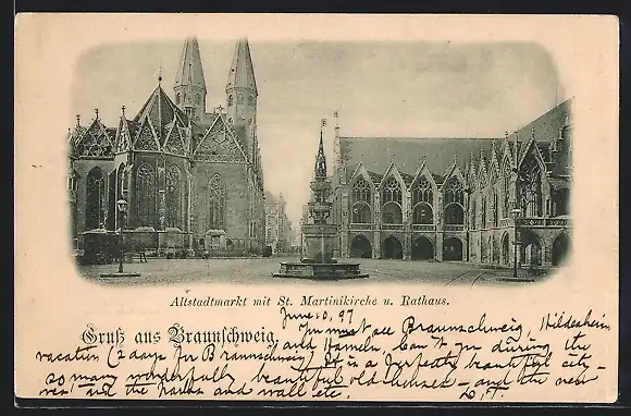 AK Braunschweig, Altstadtmarkt, St. Martinikirche und Rathaus