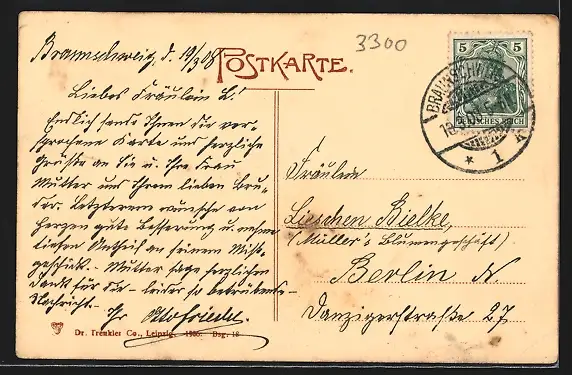 alte Ansichtskarte, gelaufen 1908, Eckknicke oben, guter Zustand