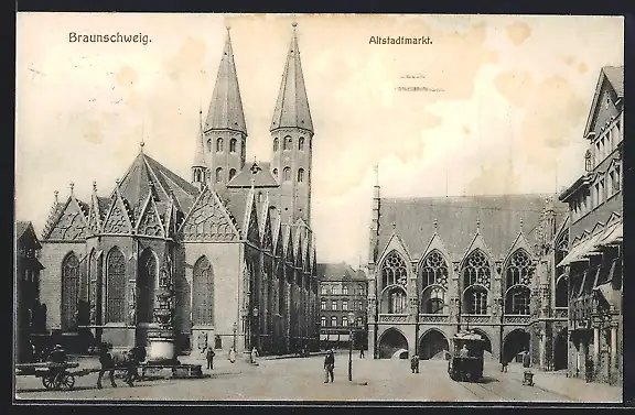 AK Braunschweig, Altstadtmarkt mit Kirche, Strassenbahn