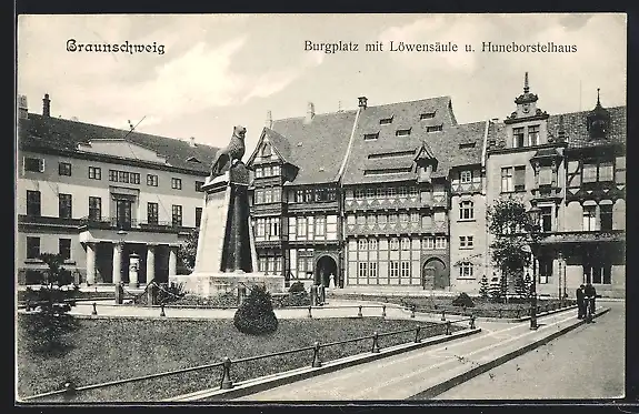 AK Braunschweig, Burgplatz mit Löwensäule und Huneborstelhaus