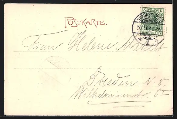 alte Ansichtskarte, gelaufen 1903, Stempelspur, guter Zustand