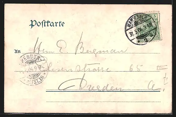 alte Ansichtskarte, gelaufen 1904, Eckknick li. unten, guter Zustand