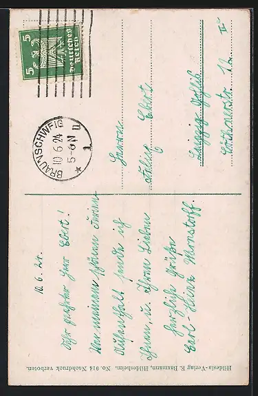 alte Ansichtskarte, gelaufen 1924, Eckknick links oben, Stempelspur, guter Zustand