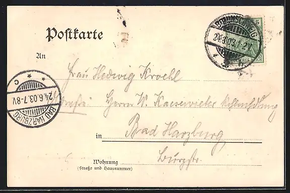 alte Ansichtskarte, gelaufen 1903, Stempelspur, guter Zustand