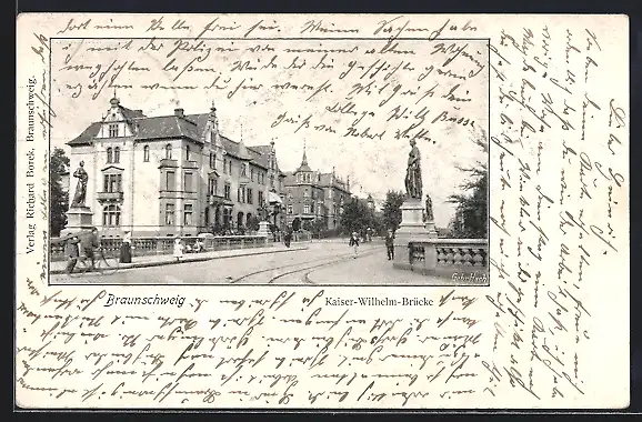 AK Braunschweig, Kaiser-Wilhelm-Brücke mit Kaiser-Wilhelm-Strasse