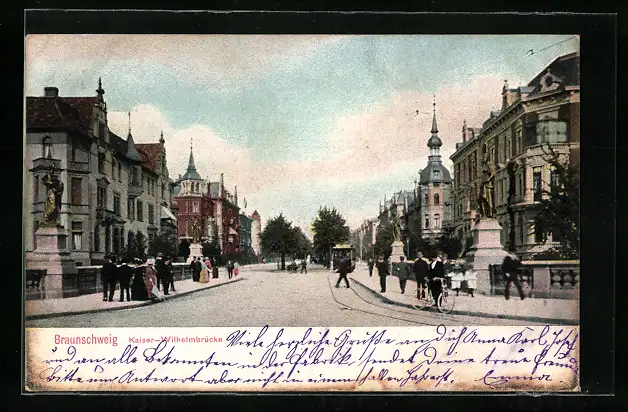 AK Braunschweig, Kaiser-Wilhelmbrücke mit Strassenbahn