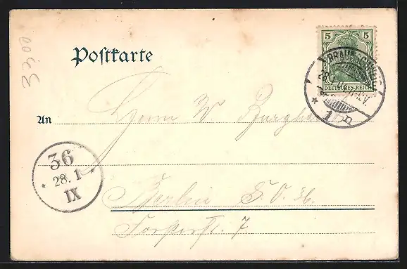 alte Ansichtskarte, gelaufen 1904, Eckknick li. oben, guter Zustand