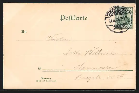 alte Ansichtskarte, gelaufen 1902, guter Zustand
