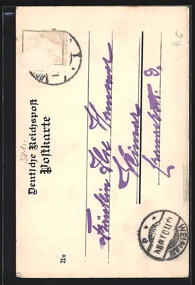 alte Ansichtskarte, gelaufen, Briefmarke entfernt, rückseitig Oberflächenschaden, guter Zustand