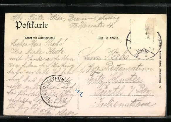 alte Ansichtskarte, gelaufen, Briefmarke entfernt, rückseitig Oberflächenschaden, guter Zustand