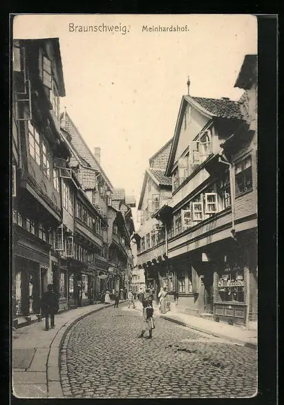 AK Braunschweig, Strassenpartie am Meinhardshof mit Geschäften