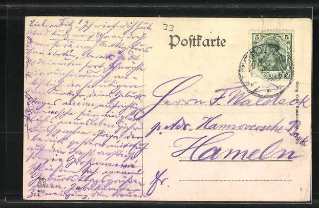 alte Ansichtskarte, gelaufen 1910, Briefmarke tw. entfernt, Stempelspur, guter Zustand