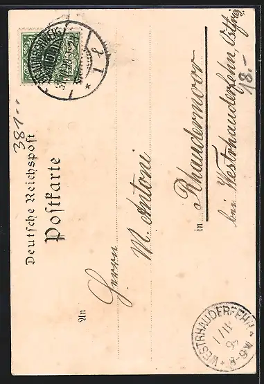 alte Ansichtskarte, gelaufen 1899, guter Zustand