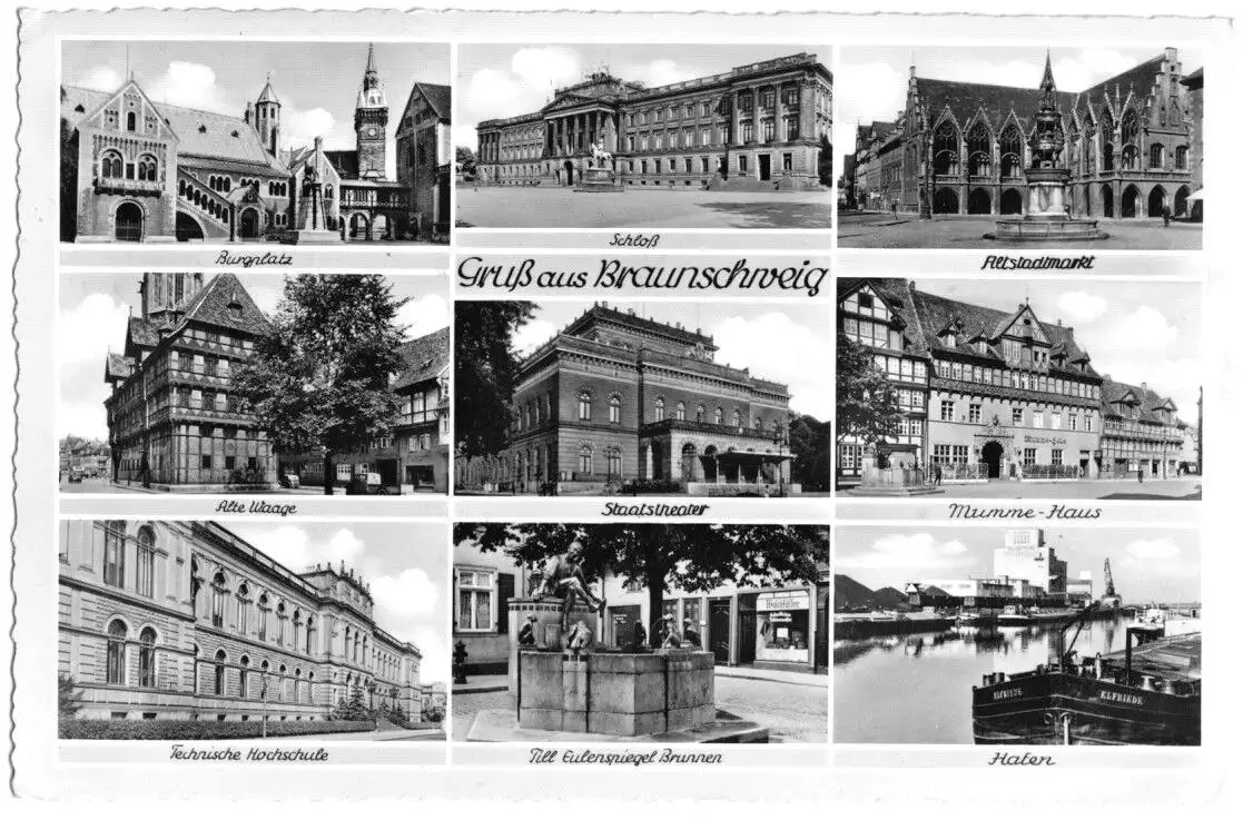 AK, Braunschweig, neun Abb., gestaltet, um 1957