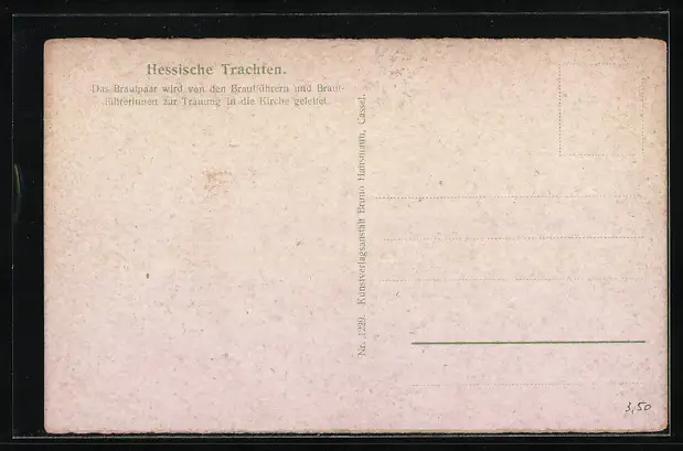 AK Brautpaar wird zur Kirche geleitet, hessische Tracht