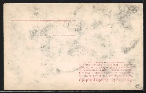 Personenbezogene Daten auf der Rückseite der Karte wurden durch blauen Textmarker unkenntlich gemacht. Die blauen Stellen sind auf die Vorderseite durchgeweicht und wirken sich negativ auf das Postkartenfoto aus