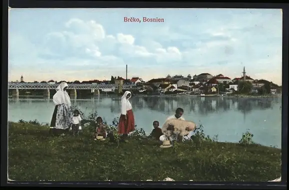 AK Brcko, Ortsansicht, Kinder am Flussufer