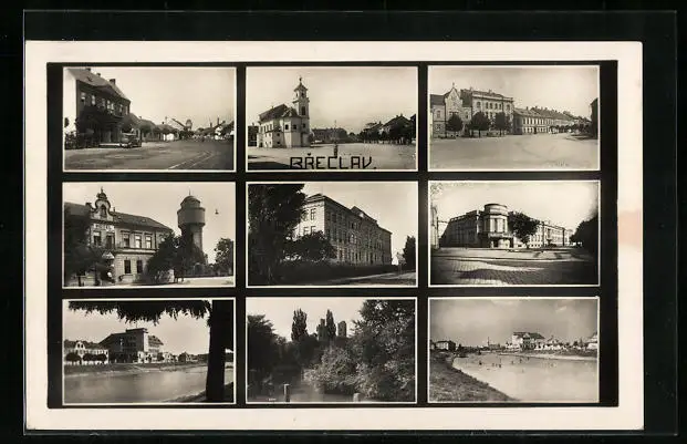 AK Breclav, Kirche, Hotel Narocni Dum, Uferpartie, Strassenpartie