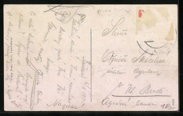 alte Ansichtskarte, gelaufen, Briefmarke entfernt, guter Zustand