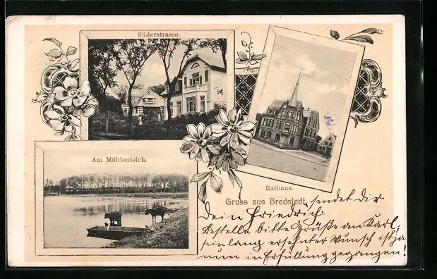 AK Bredstedt, Süderstrasse, Mühlenteich und Rathaus