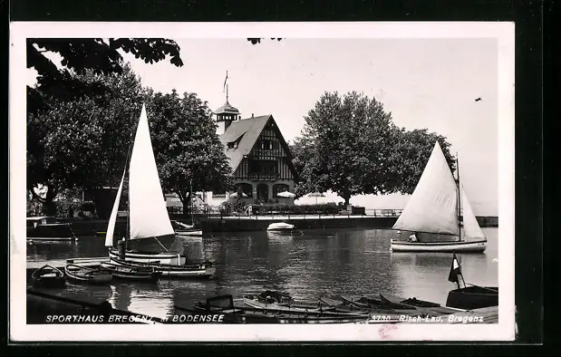 AK Bregenz /Bodensee, Uferpartie mit Sporthaus