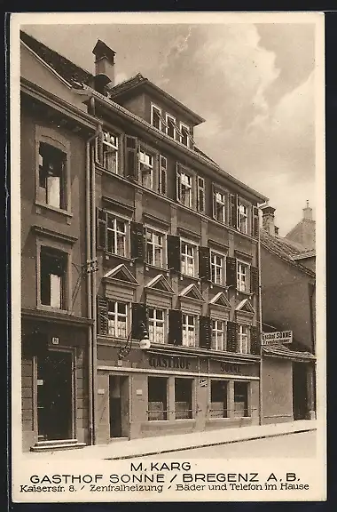 AK Bregenz, Gasthof Sonne v. M. Karg in der Kaiserstr. 8