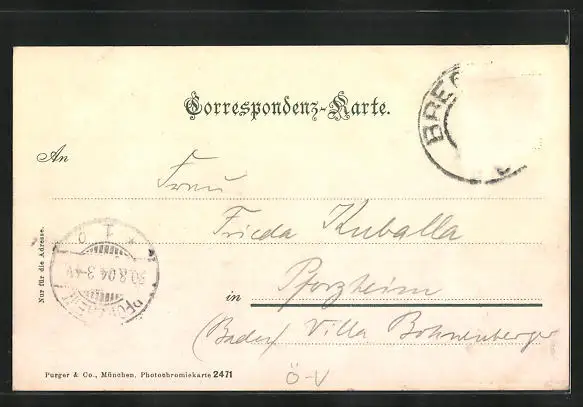 gelaufen 1904, Briefmarke entfernt, guter Zustand