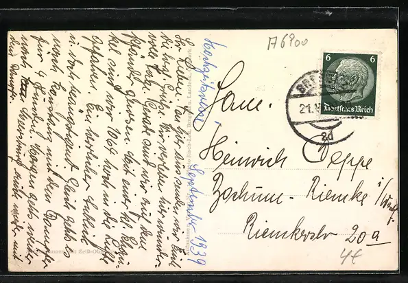 gelaufen 1939, Eckknick unten re., guter Zustand