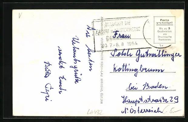 gelaufen 1954, Briefmarke entfernt, guter Zustand