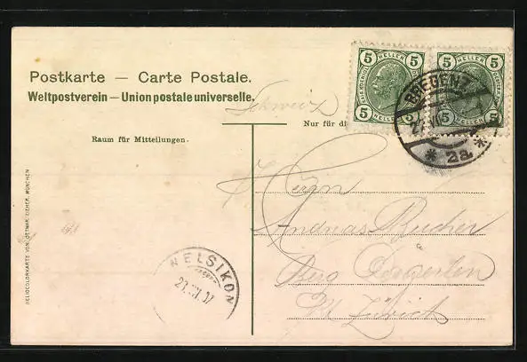alte Ansichtskarte, gelaufen, Stempelspur, guter Zustand