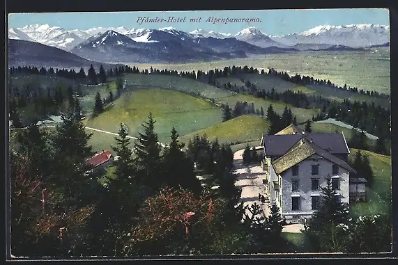 AK Bregenz, Pfänder-Hotel mit Alpenpanorama