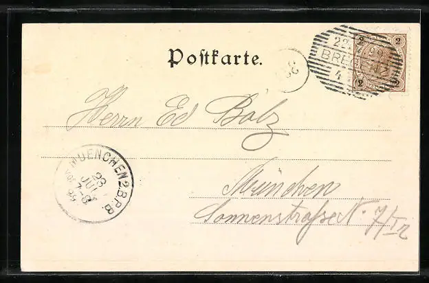 alte Ansichtskarte, gelaufen 1899, Albumspuren, guter Zustand
