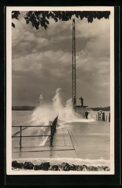 AK Bregenz, Uferpartie am Bodensee, Brandung