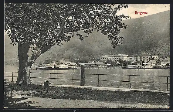 AK Bregenz, Uferpartie mit Dampfer