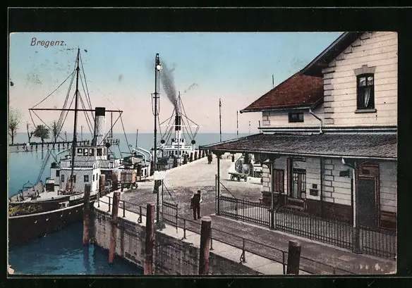 AK Bregenz, Uferpartie mit zwei Dampfern