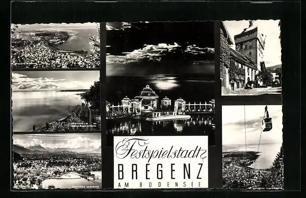 AK Bregenz a. B., Ortsansicht, Seilbahn, Festspiel-Aufführung
