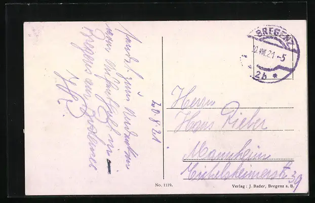 alte Ansichtskarte, gelaufen 1921, guter Zustand