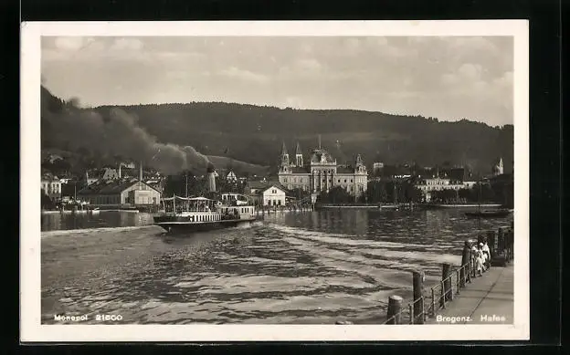 AK Bregenz am Bodensee, Dampfer am Hafen