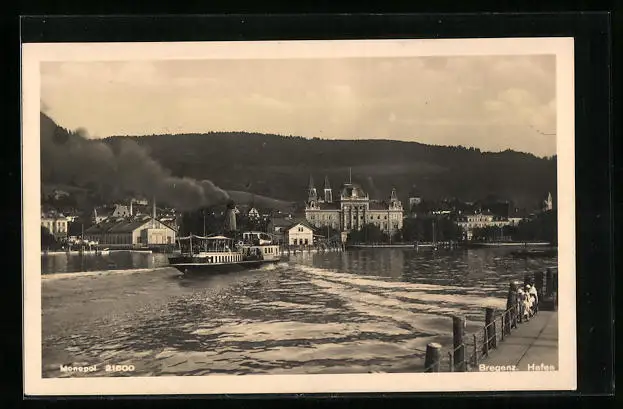 AK Bregenz am Bodensee, Dampfer am Hafen