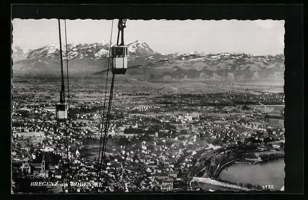 AK Bregenz am Bodensee, Ortsansicht mit Pfänderbahn