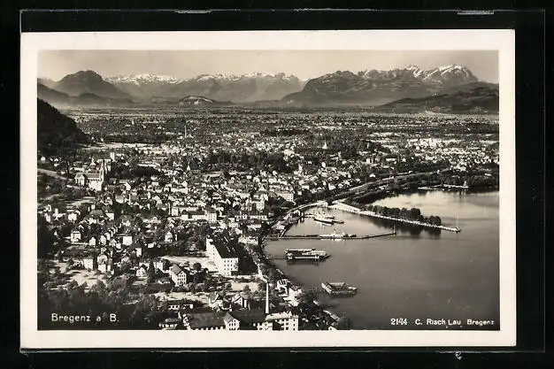 AK Bregenz am Bodensee, Totalansicht aus der Vogelschau