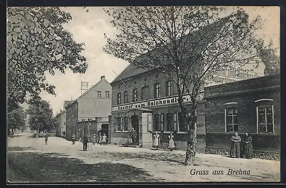 AK Brehna, Gasthof zum Reichsadler, Strassenpartie