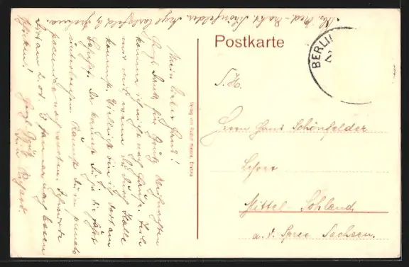 alte Ansichtskarte, gelaufen, Briefmarke entfernt, Stempelspur, guter Zustand