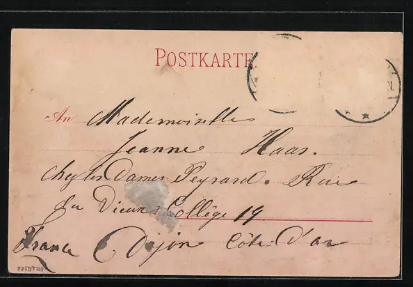alte Ansichtskarte, gelaufen, Briefmarke entfernt, guter Zustand