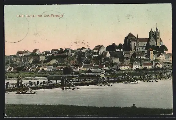 AK Breisach, Ortsansicht mit Schiffbrücke
