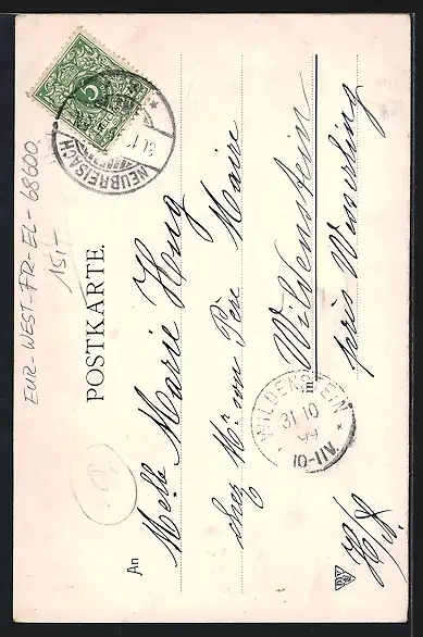 alte Ansichtskarte, gelaufen 1899, Stempelspur, guter Zustand