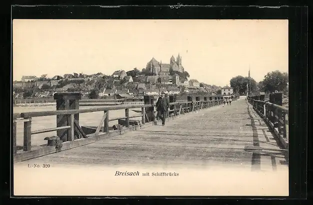 AK Breisach, Panorama mit Schiffbrücke