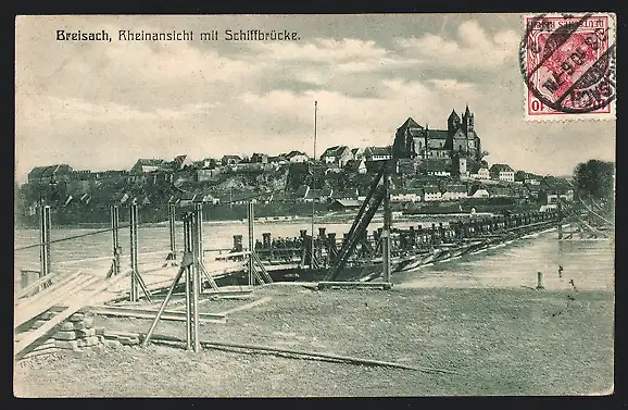AK Breisach, Rheinansicht mit Schiffbrücke