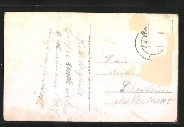 alte Ansichtskarte, gelaufen, Briefmarke entfernt, rückseitig Oberflächenschaden, guter Zustand